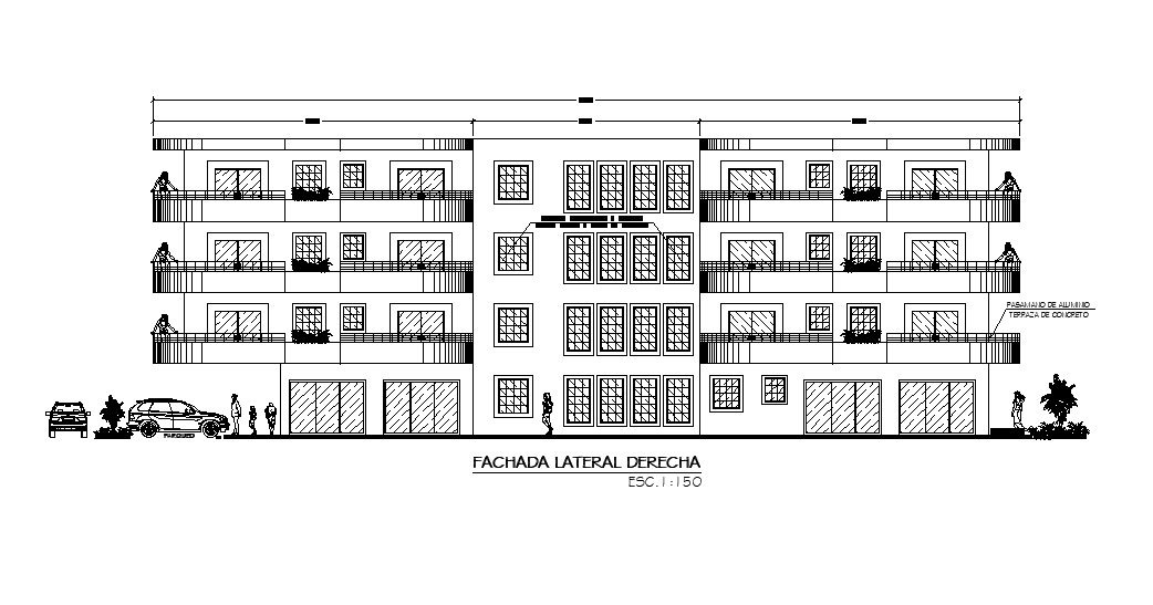 An elevation view of 31x46m apartment plan is given in this Autocad drawing file. Download now.