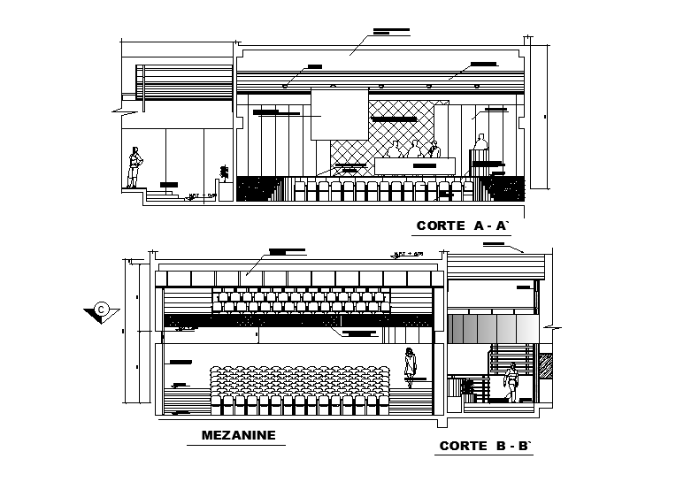 Mezzanine plan of college auditorium plan is given in this Autocad DWG drawing file. Download now.