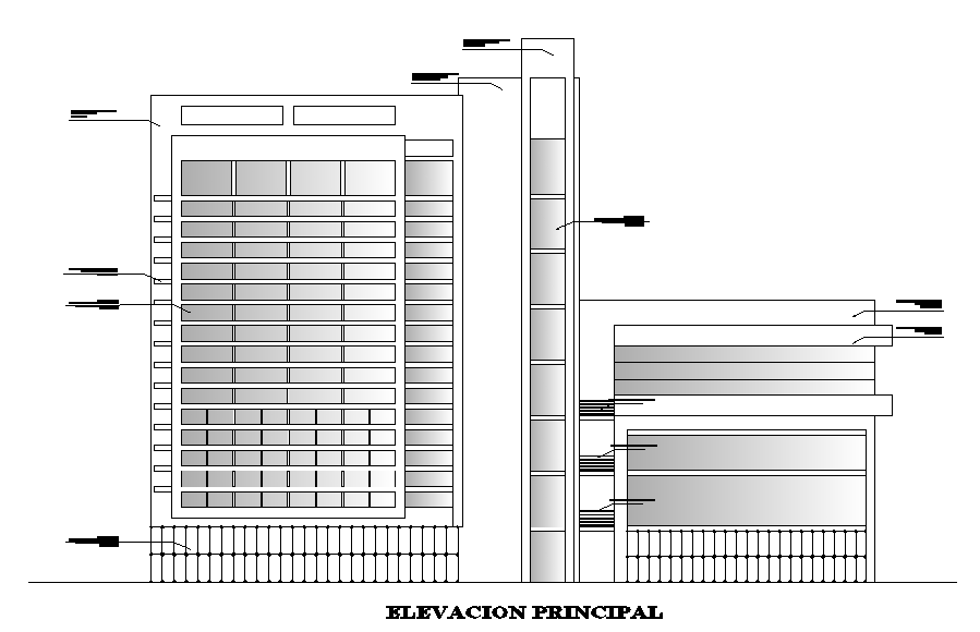 An elevation view of 30x40m financial office plan is given in this Autocad drawing file.  Download now.
