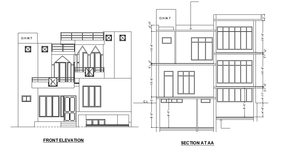 An elevation of G+1 house building is given in this Autocad 2D DWG drawing file. The section view of the house building is given. Total height of the building is 35’. For more details download the Autocad drawing file. Thank you for downloading the Autocad files and other CAD program files from our website.