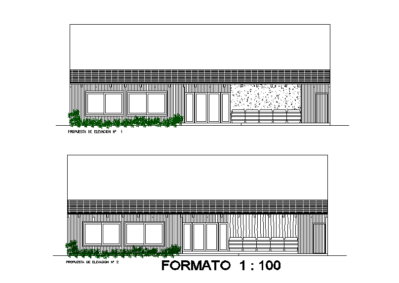 Propuesta de elevacion of the building view is given in this Autocad drawing file. This is single story building. Garden is mentioned in this elevation. For more details download the Autocad drawing file. Thank you for downloading the Autocad files and other CAD program files from our website.