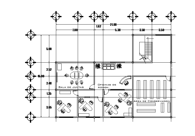 21x15m college administrative office plan is given in this Autocad drawing file. The length and breadth of the plan is 21m and 15m respectively. In this plan, account section, office area, conference room, meeting area and other details are available. For more details download the Autocad drawing file. Thank you for downloading the Autocad files and other CAD program files from our website.