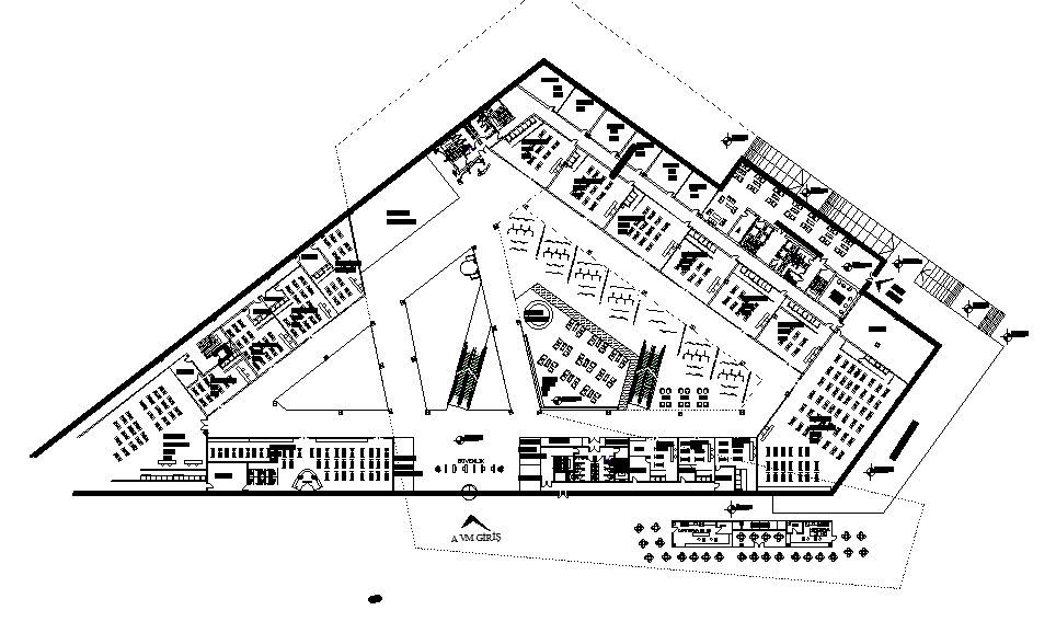 Office cum shopping building plan is given in this Autocad drawing file.Download now.
