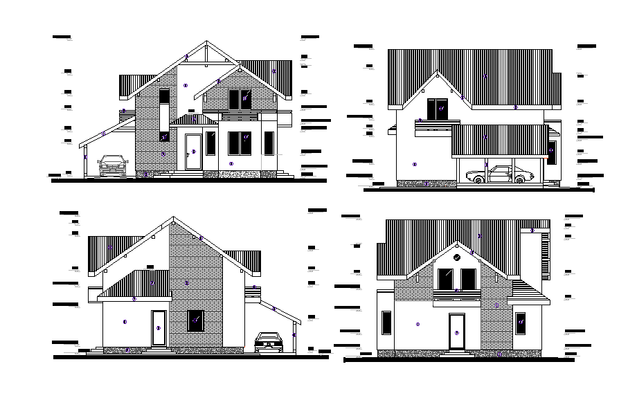 An elevation view of 9x8m house building is given in this Autocad drawing file. This is G+1 house building. Living area, dining hall, kitchen, master bedroom with attached toilet, car parking, common toilet and other details are available. For more details download the Autocad drawing file. Thank you for downloading the Autocad files and other CAD program files from our website.