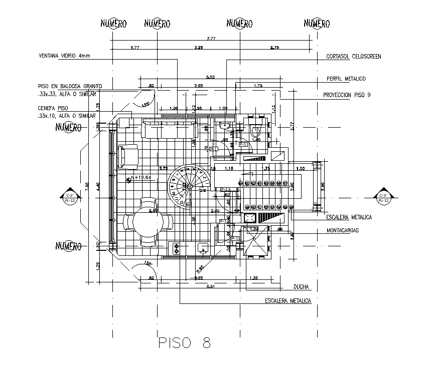 8x8m security room plan is given in this Autocad drawing file. Download now.
