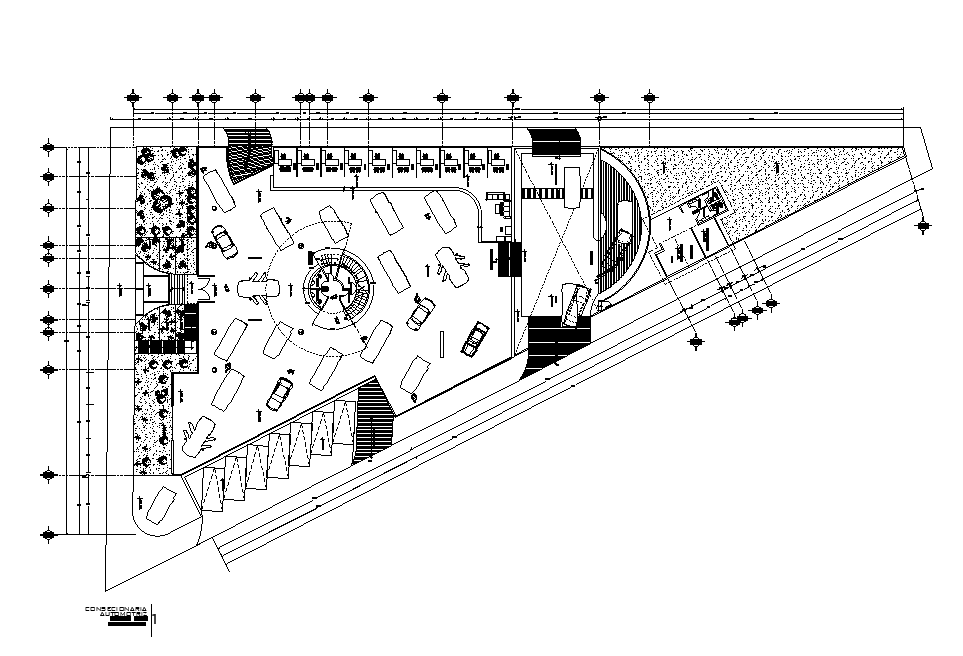 86x44m auto agency first floor plan is given in this Autocad drawing file. Download now.