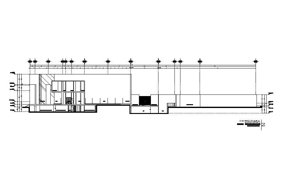 Longitudinal section view of auto agency building is given in this Autocad drawing file. Download now.