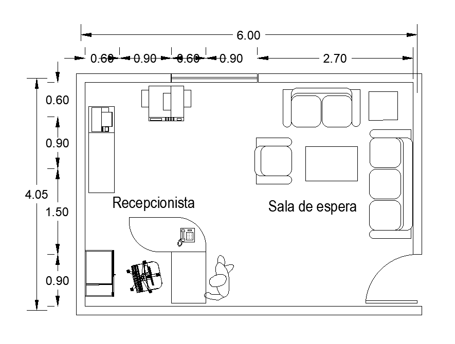 6x4m auto agency office room plan is given in this Autocad drawing file. The length and breadth of the office plan is 6m and 4m respectively. In this office plan, reception, and hall is available. For more details download the Autocad drawing file. Thank you for downloading the Autocad file and other CAD program files from our website.