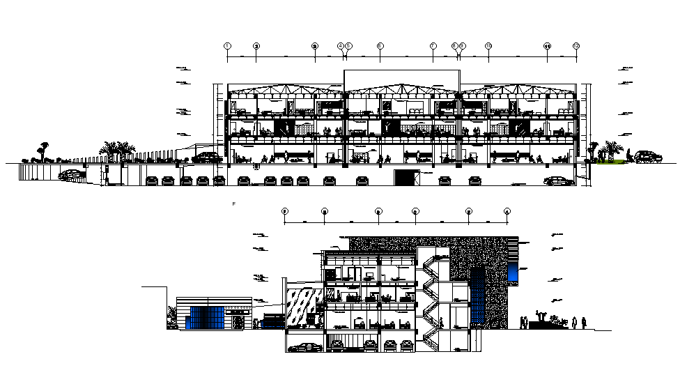 Commercial building section provided in this CAD drawing. Download 2d autocad drawing file.
