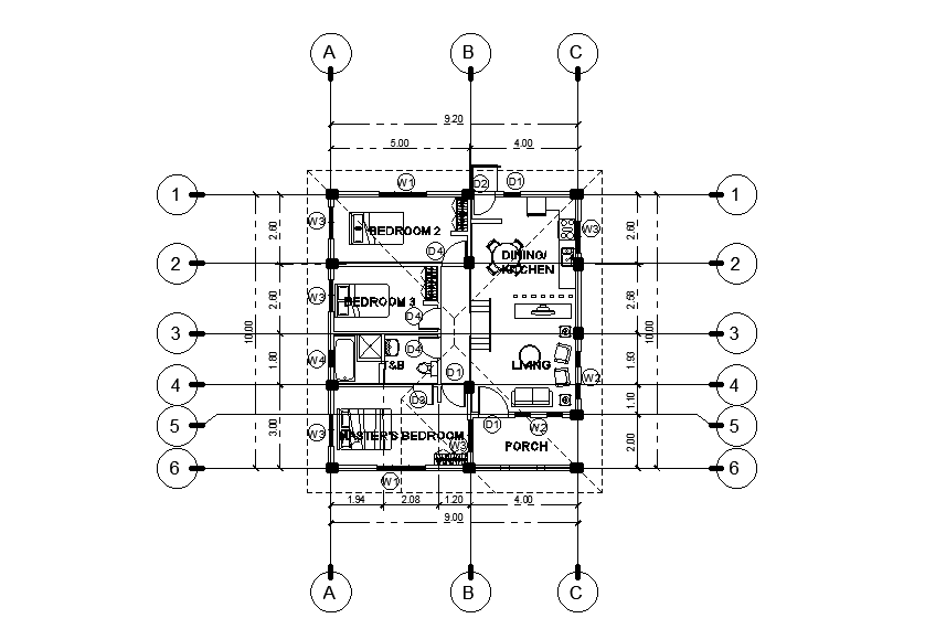 This AutoCAD file separated a 2bhk bungalow detail drawing. Download 2d autocad drawing file.