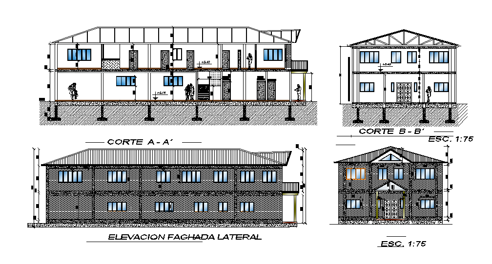 School interior section drawing specified in this AutoCAD file. Download 2d autocad drawing file.