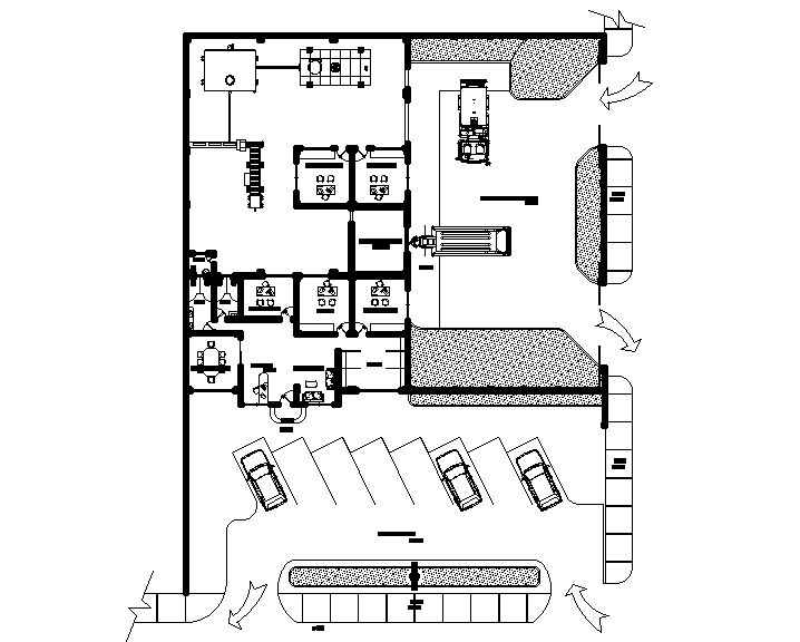The corporate office ground floor plan separated in this CAD file. Download 2d autocad drawing file.