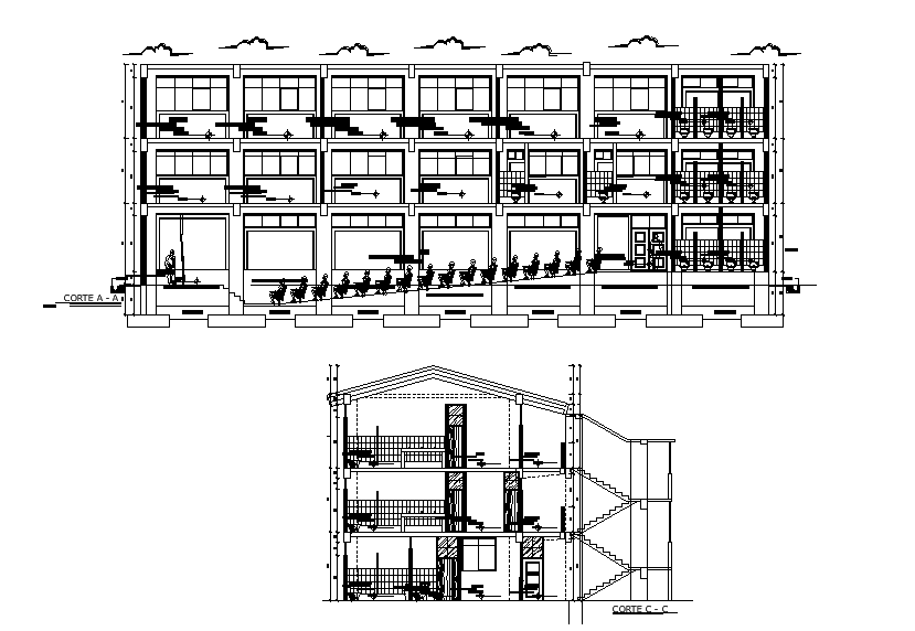Amphitheater sitting section detail drawing derived in this AutoCAD file. in this file services and utilities detail presented with the process drawings. In this drawing, you will have an amphitheater, lounge, hall, small restaurant, waiting and meeting area and administrative offices, parking, and services. Download 2d AutoCAD drawing DWG file detail.