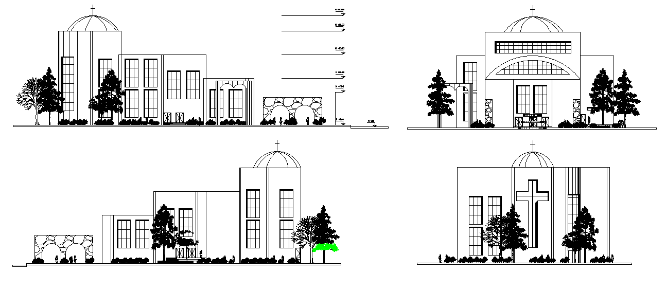 Church Building All Side Elevation Design Download DWG File