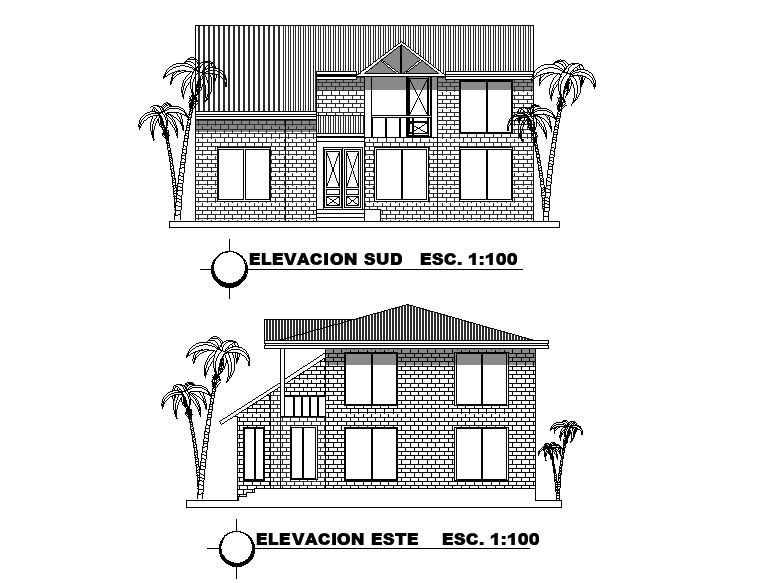 An elevation view of 12x12m house building is given in this Autocad drawing file. Download now.