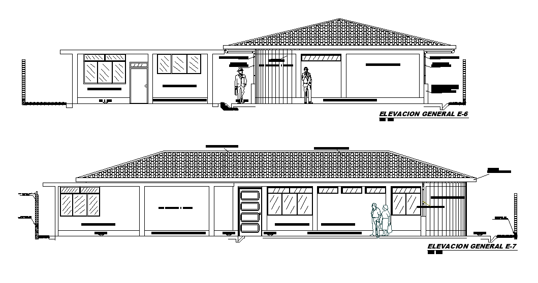 An elevation view of 24x23m community hall building is given in this Autocad drawing file. Download now.