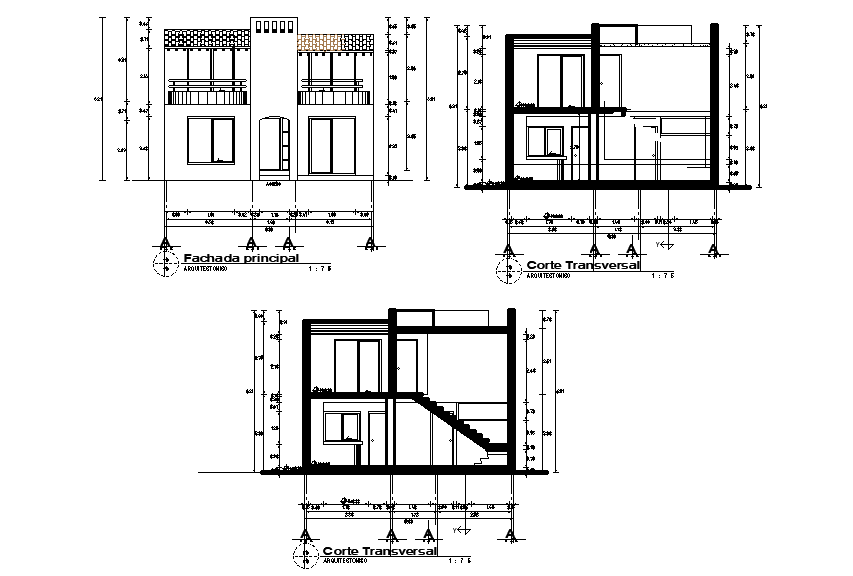 An elevation view of 8x15m residential house building has been given in this 2D Autocad drawing file. Download now.