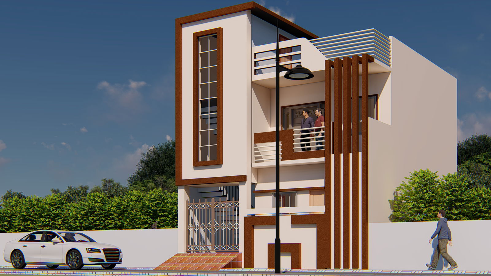 Front elevation of two story 3D view house designs is given in this Revit file. In this house, the staircase is provided at outer side. This house is painted with brown color with white combination paint. This drawing is very useful for the people who searching for houses elevation ideas, architects and civil engineering. For more details download the Autocad file. Thank you for downloading the Revit file and other CAD program files from our website.