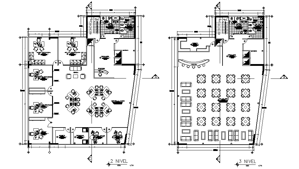 Restaurant floor plan detail provided in this AutoCAD drawing file. Download 2d autocad drawing file.