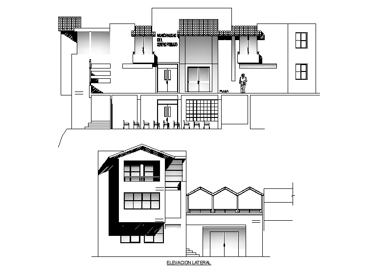 Bungalow exterior elevation separated in this file. Download 2d autocad drawing file.
