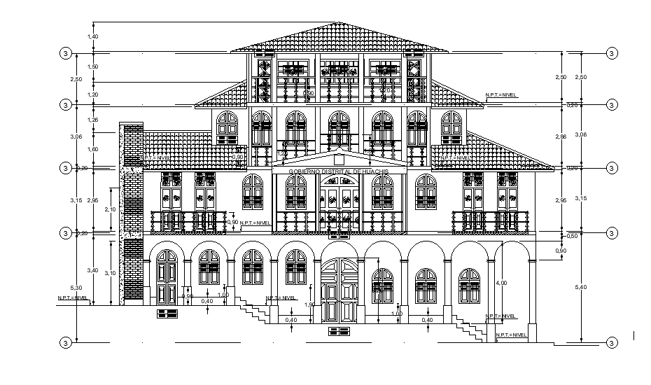 Villa elevation drawing presented in this file. Download 2d autocad drawing file.