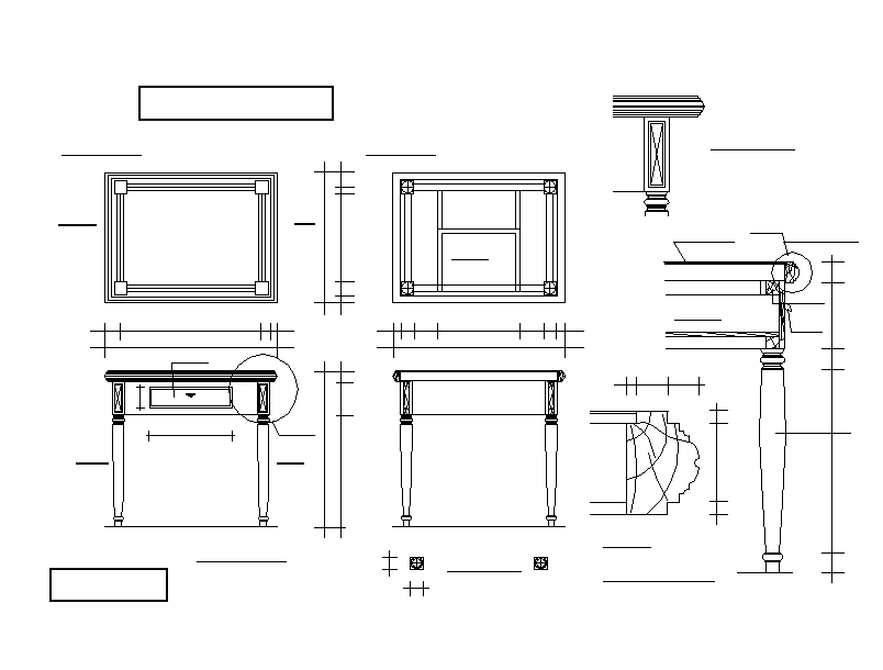 Wooden Table all detail in DWG file include. and section detail, elevation design, top view detail, center cutting design.