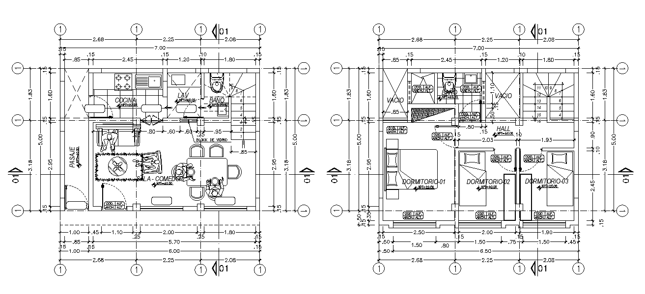 7X5 meter plot size for residence house ground floor and first-floor plan which includes 3 bedrooms, kitchen, drawing room, dining area, inside staircase and toilet with all furniture layout design. the addition drawing such as center line plan with all dimension detail dwg file. Thank you for downloading the Autocad file and other CAD program files from our website.
