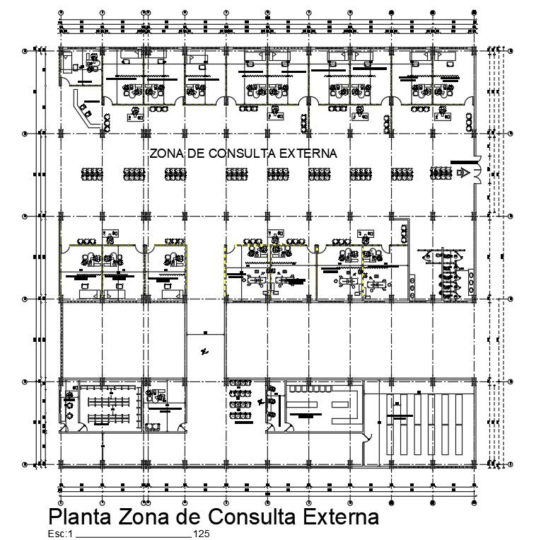 Hospital plan of external consultation area plan is given in this AutoCAD drawing file. Download now.