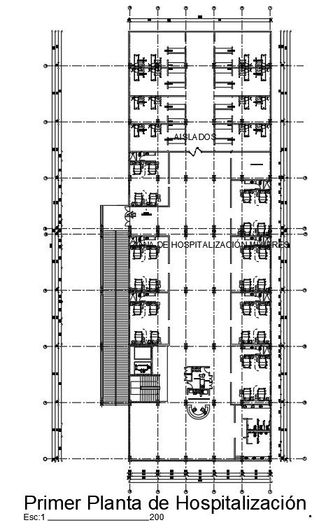 11x34m first floor of hospitalization is given in this Autocad drawing file. This is multispecialty hospital plan. Hospitalization of schools, hospitalization of preschools, living room, isolated, living room, toilet, and other detail is mentioned in this drawing model. For more details download the AutoCAD drawing file. Thank you for downloading the Autocad drawing file and other CAD program files from our website.