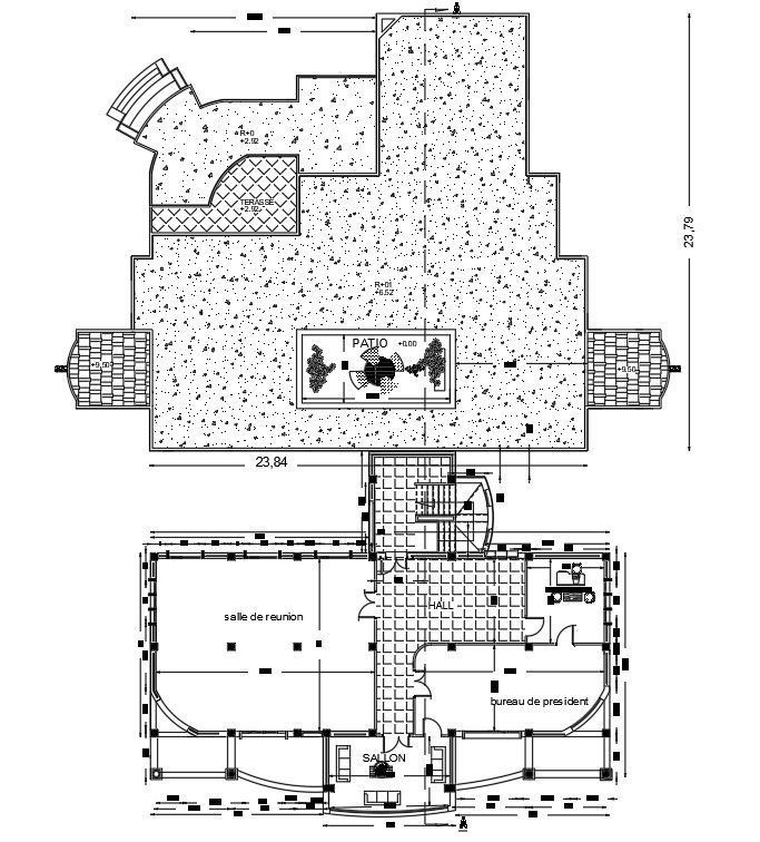 43x25m second floor office plan is given in this Autocad drawing file. Download the Autocad file now.
