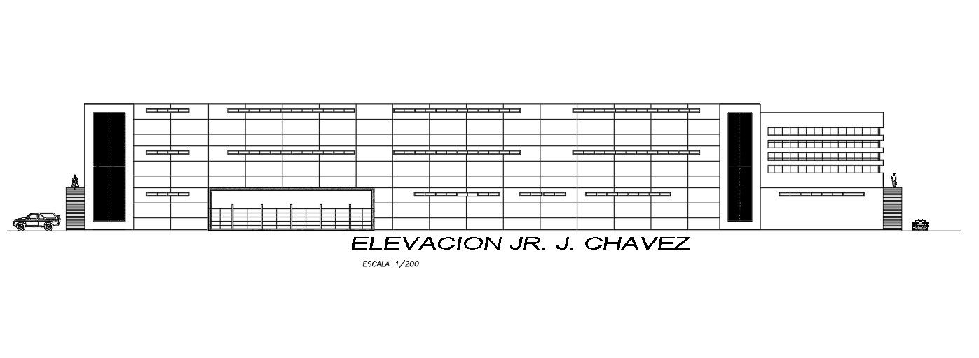 Front elevation of 43x25m office building view is given in this Autocad drawing file.   Download the Autocad file now.