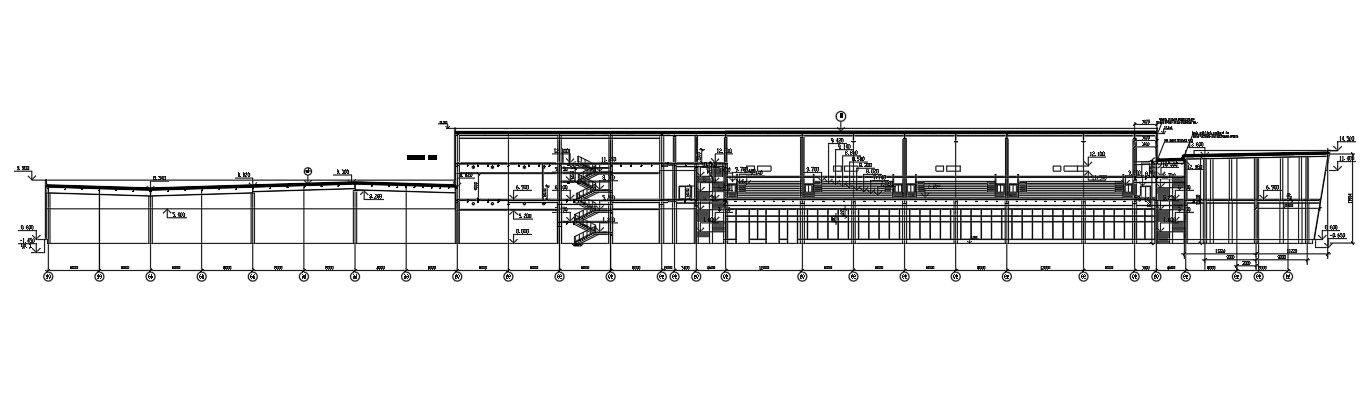 Back side section view of 43x25m office building is given in this Autocad drawing file. Download the Autocad file now.