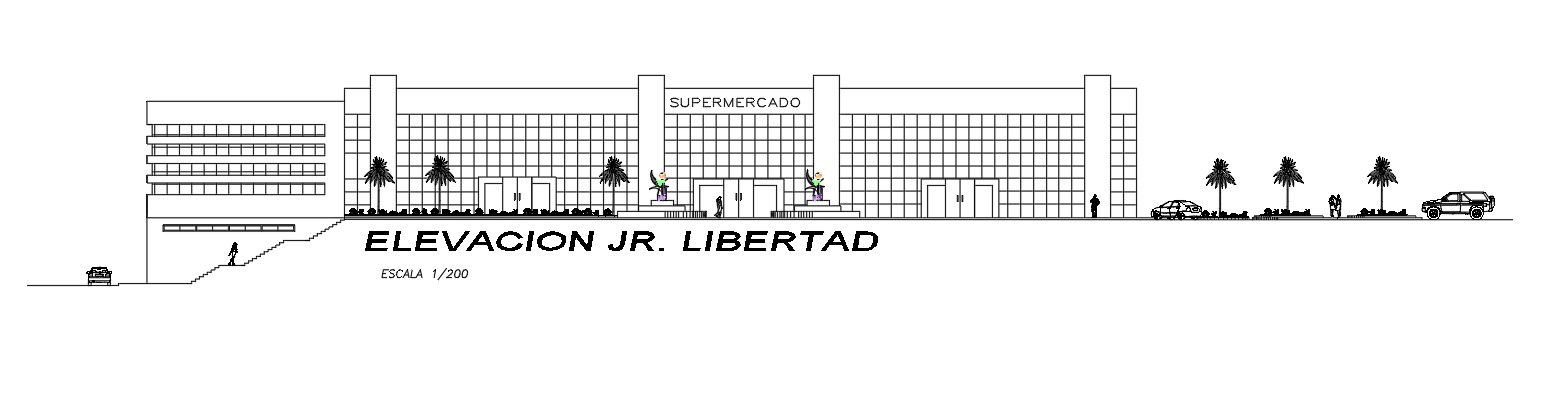Right side elevation of 43x25m office building view is given in this Autocad drawing file. Download the Autocad file now.