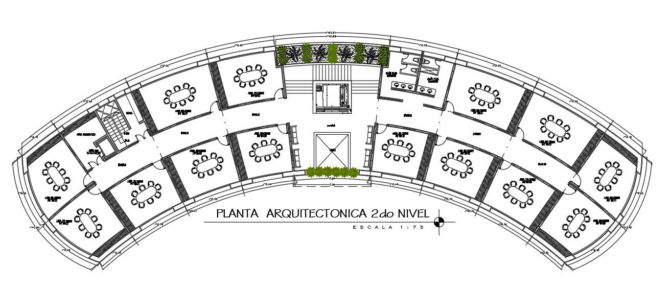 Second floor of the commercial building plan is given in this Autocad drawing file. Download now.