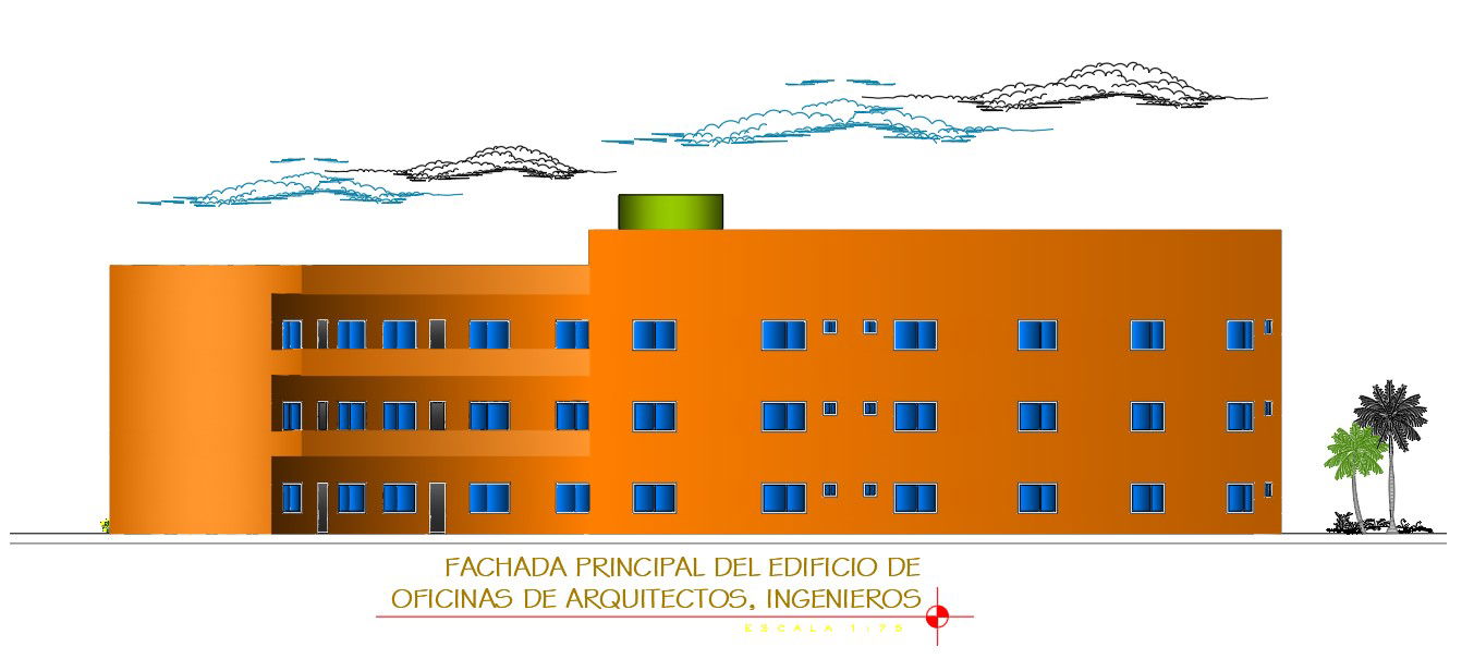 Back side elevation view of commercial building is given in this Autocad drawing file. Download now.