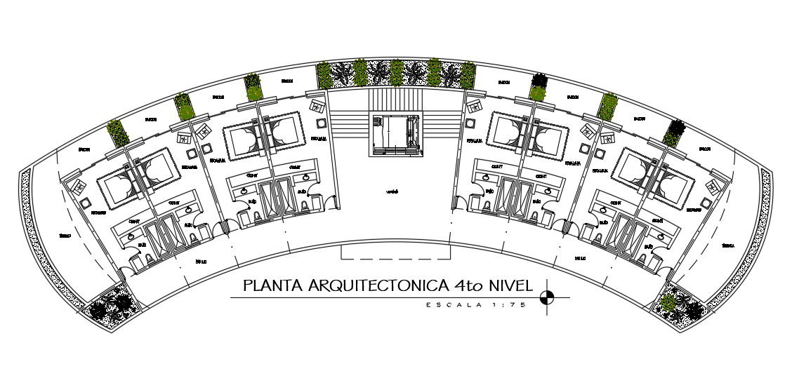 Fourth floor of the commercial building plan is given in this Autocad drawing file. This is G+3 commercial building. In this plan water closet for male & female, guest rooms with attached toilet, closet, bath tub, terrace, balcony and other details are mentioned. Other details are given in this model. For more details download the Autocad file. Thank you for downloading the Autocad file and other CAD program files from our website.