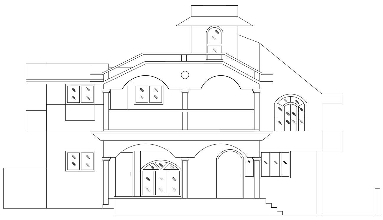 Front elevation view of house building was given in this Autocad drawing file. Download now.