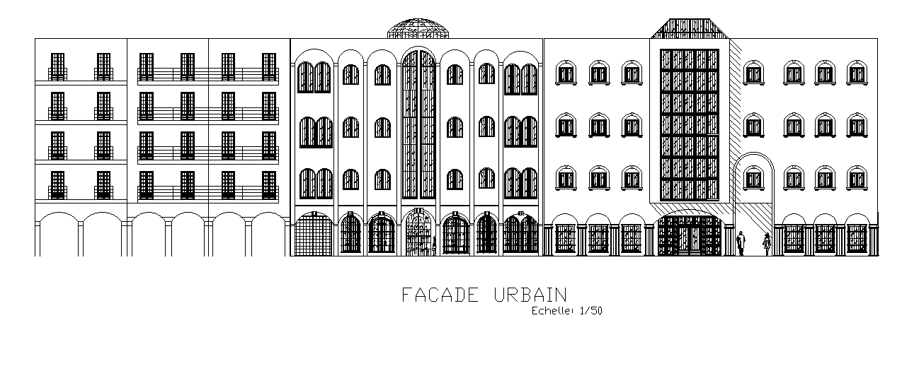 Bank front elevation detail drawing is given in this AutoCAD file. Download this 2d AutoCAD drawing file.