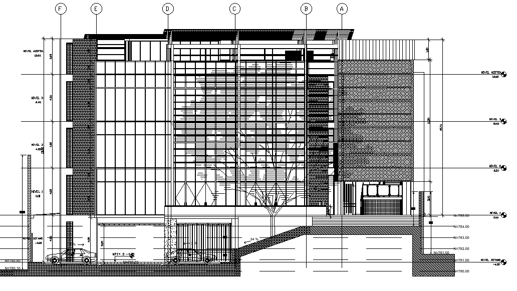Rear side elevation of the office building is separated in this AutoCAD DWG drawing. Sectional details are clearly given in this drawing file. commercial office building elevation and section details are given in this DWG file. Download the AutoCAD 2D DWG file. Thank you so much for downloading the DWG file from our website