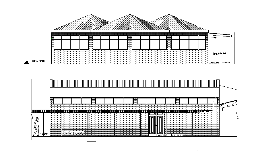An elevation view of 20x7m laboratory building is given in this Autocad drawing file. Download now.