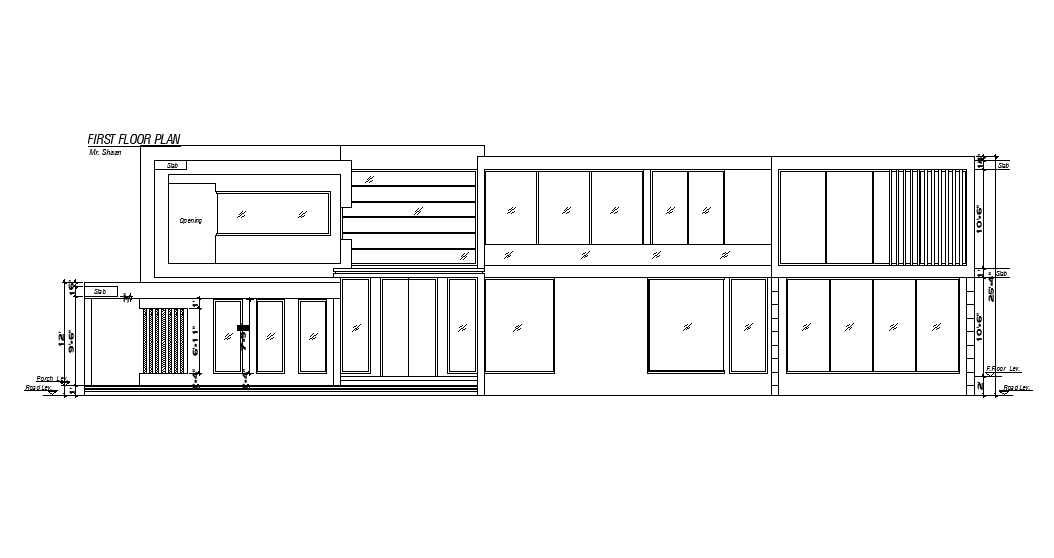 An elevation view of Luxury house building has been given in this Autocad drawing file. This is G+1 house building. Kitchen, dining area, living hall, lounge, guest room with attached toilet, open terrace kitchen, maid room with attached toilet, store room, lobby, master bedroom with attached toilet and many details are given in this drawing model. For more details download the Autocad drawing file. Thank you for downloading the Autocad files and other CAD program files from our website.