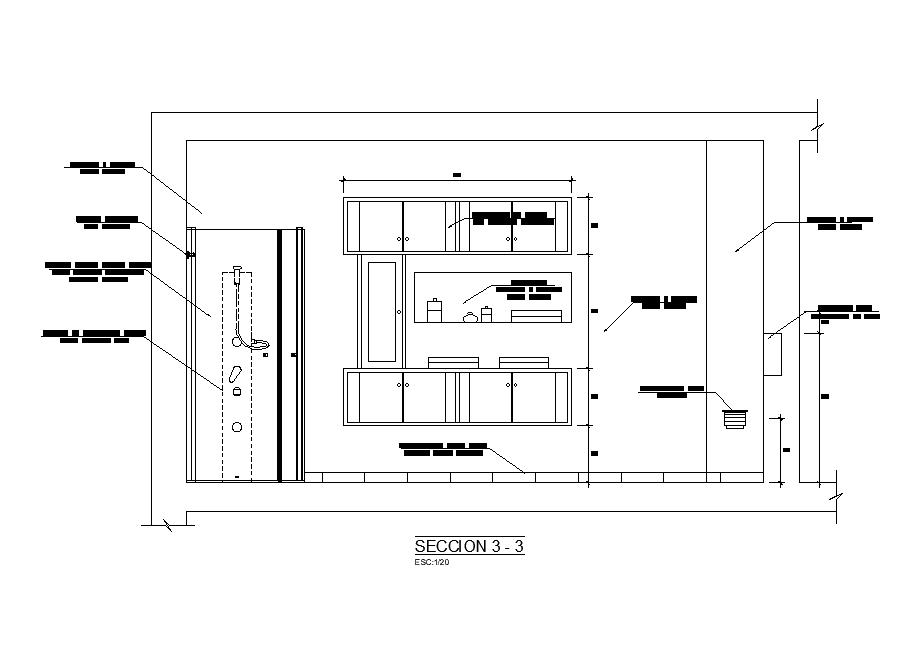 Left side section view of 4x3m toilet building has given in this Autocad drawing file. The total height of the toilet building is 10’. Shower, water closet, wash basin, ventilator, Doors, Aluminum carpentry window, 6mm reflective mirror glass, mahogany wood paneling (lacquered), bathroom accessories oven, shower tray (rock) 80x80 brandy white series, hydro mass column neos (roca) series akuaqua and other details are available in this drawing file. For more details download the Autocad file. Thank you for downloading the Autocad file and other CAD program files from our website.