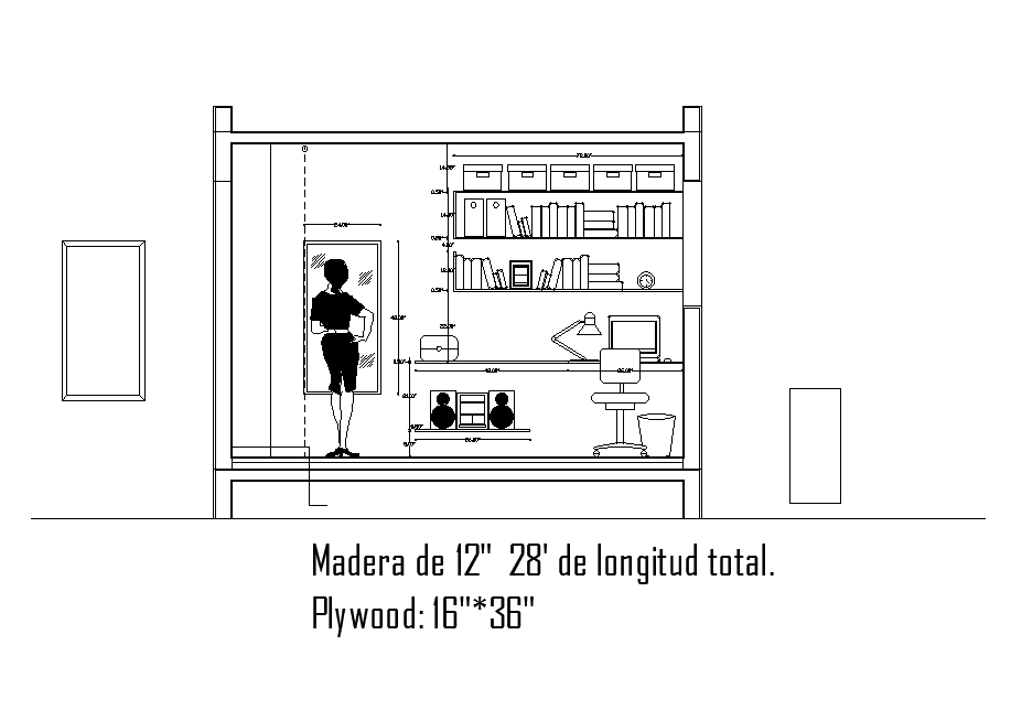 Remodelling of bedroom is given in this Autocad drawing file. Total height of the bedroom is 98”. In this showcase details are given. Like books arrangement, system place and other details are available. For more details download the Autocad file. Thank you for downloading the Autocad file and other CAD program files from our website.