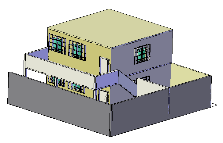 Here the 3D drawing of One family house modern 2 storeys design drawing in this auto cad file.