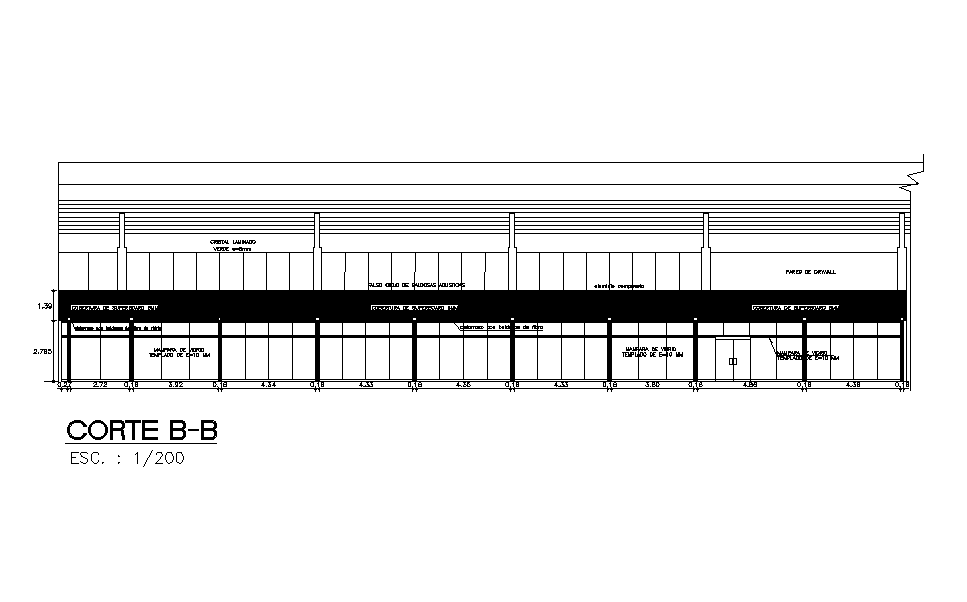 Left section view of projected floor building has been given in this Autocad drawing file. Material details are given for joint connections. This is airport building. Projection of arriostre beams, brick wall, massages, beauty accessories, drywall wall, commercial area-cafeteria, over offices, meeting room, archive, communication center, head of operations, computer center, secretary, water administrative office and other details are available. For more details download the Autocad file. Thank you for downloading the Autocad file and other CAD program files from our website.