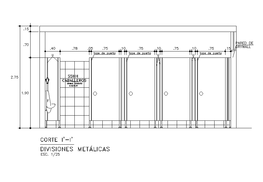 Metallic partition of toilet is given in this Autocad 2D DWG drawing file. Download now.