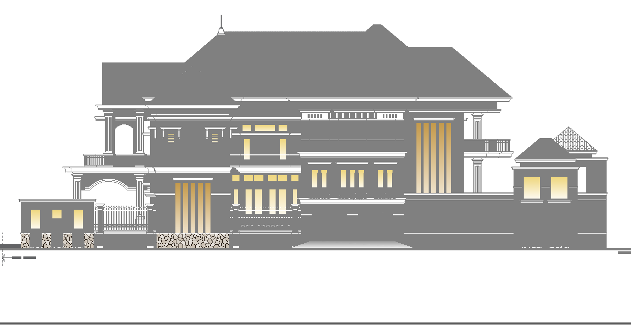 Bungalow house elevation view is given in this Autocad drawing file. This is G+1 bungalow house building. In this living area, dining hall, kitchen, patio, lavanderia, master bedroom with attached toilet, kid’s room, guest room and other details are available. For more details download the Autocad file. Thank you for downloading the Autocad file and other CAD program files from our website.