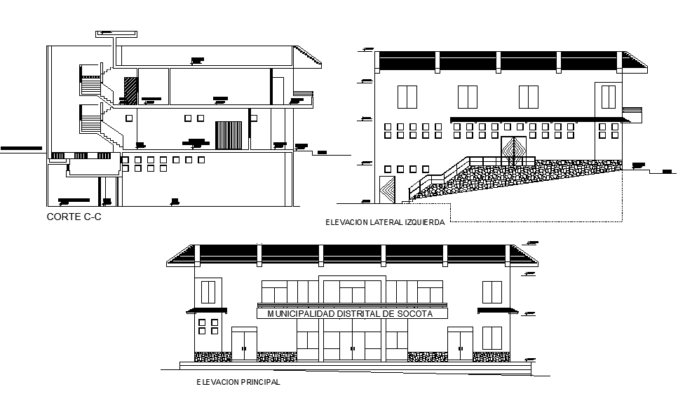 Architecture municipal office building view is given in this Autocad drawing model. This is G+1 office building. Section and elevation view of the building is given. For more details download the Autocad file. Thank you for downloading the Autocad files and other CAD program files from our website.