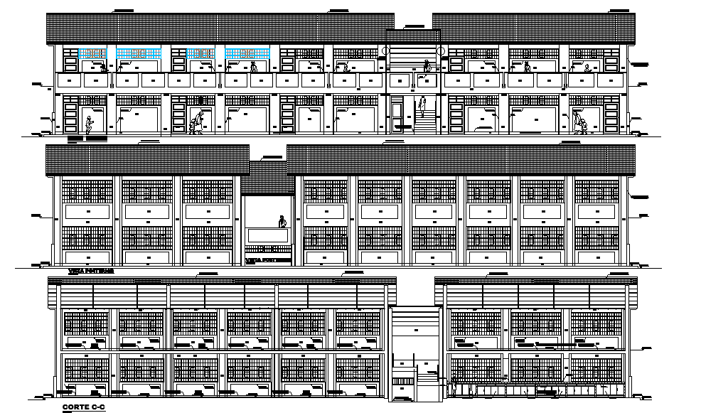 G+1 building elevation view is given in this Autocad drawing file. Download now.