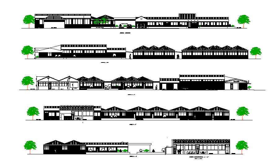 An elevation view of 33x8m office plan is given in this Autocad drawing file. Download now.